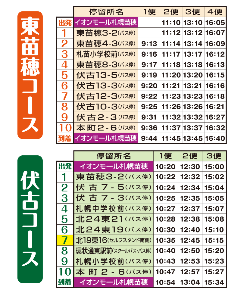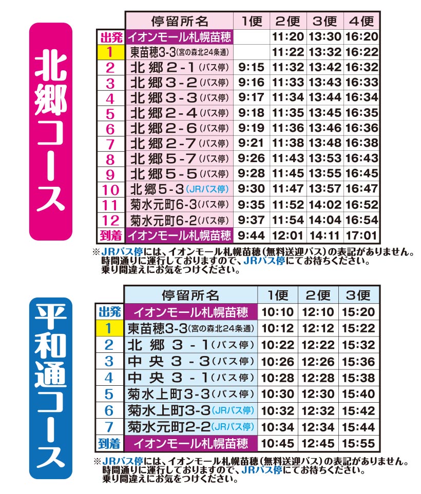 | その他 | 無料送迎バス専用のバス停はございませんので各停留所付近でお待ち下さい。 |