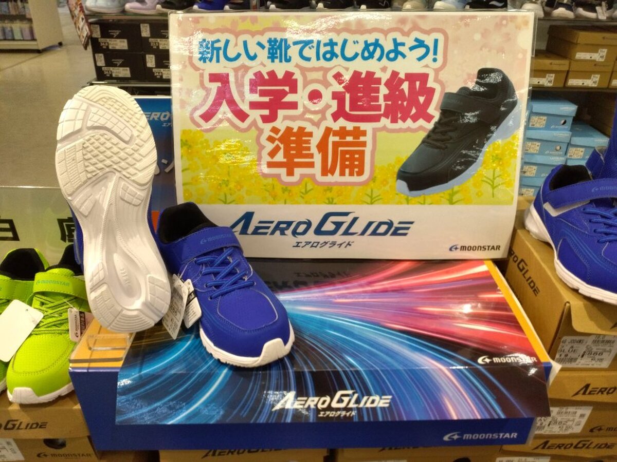 2階こども靴売場では小学生の必需品白底スニーカーも種類豊富に取り揃えています。